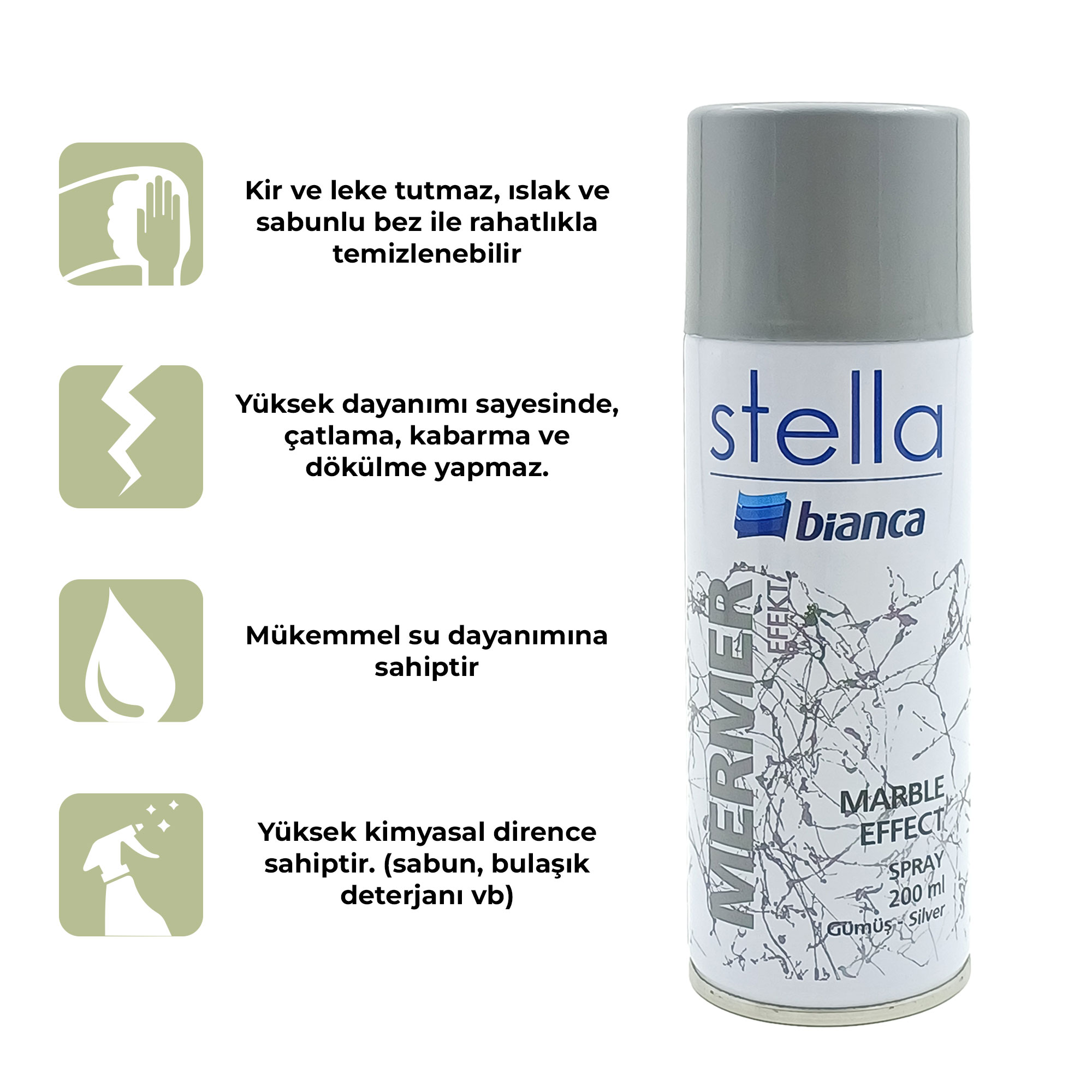 | Etiketler | Bianca Stella İnce Mermer Efekt Sprey Boya Gümüş 200 ml |
