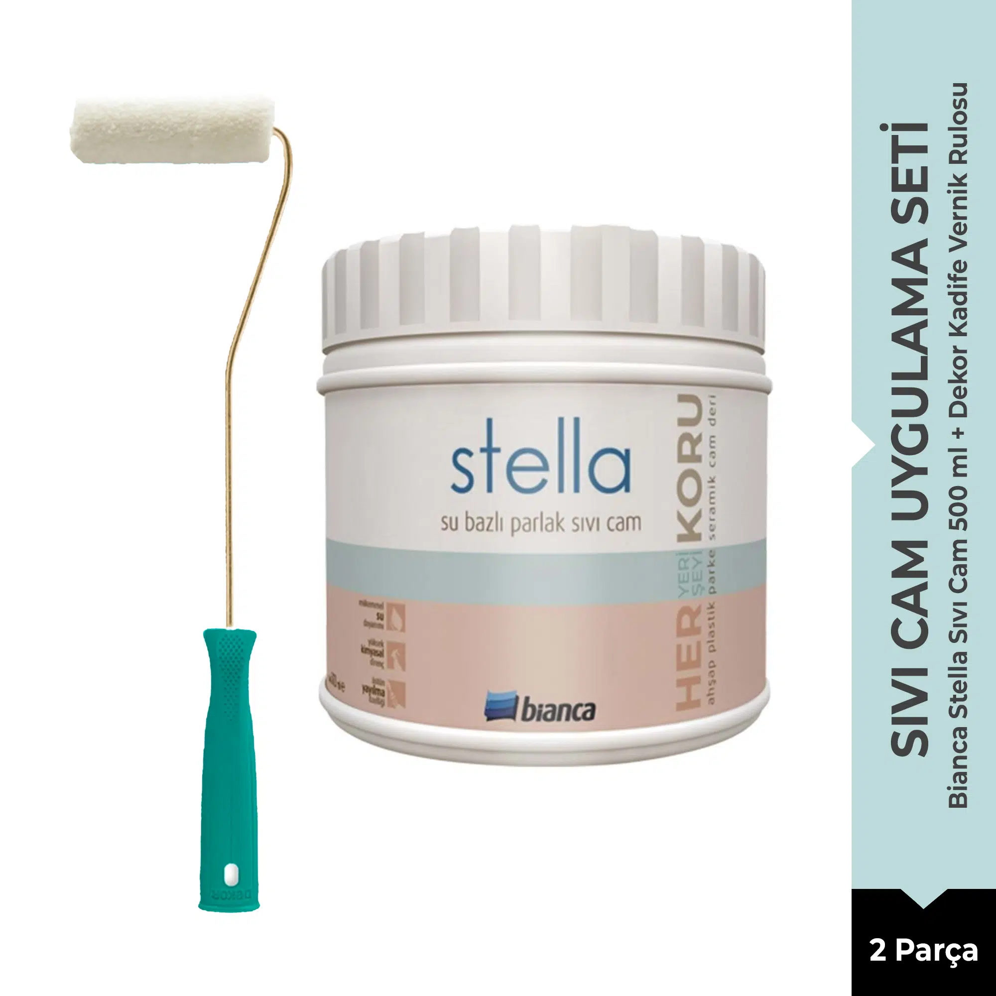 Bianca Stella Su Bazlı Parlak Sıvı Cam, yüzeylerde yüksek koruma ve estetik bir parlaklık sağlamak amacıyla geliştirilmiş profesyonel bir koruyucu katmandır. Bu set, uygulama sürecini kolaylaştırmak ve kusursuz bir bitiş elde etmek için uygun uygulama ekipmanıyla birlikte sunulmaktadır.