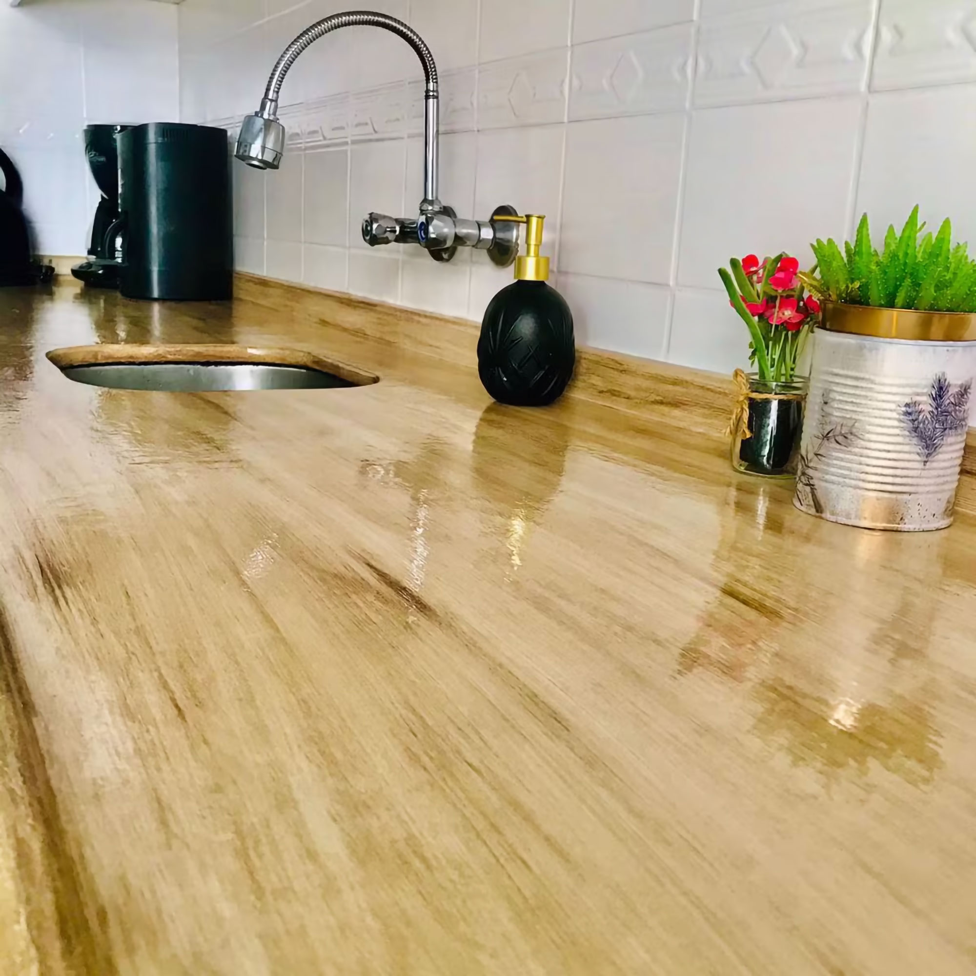 Mutfak tezgahları için: Bianca Vetro Sıvı Cam (2 kat) uygulanmalıdır.
