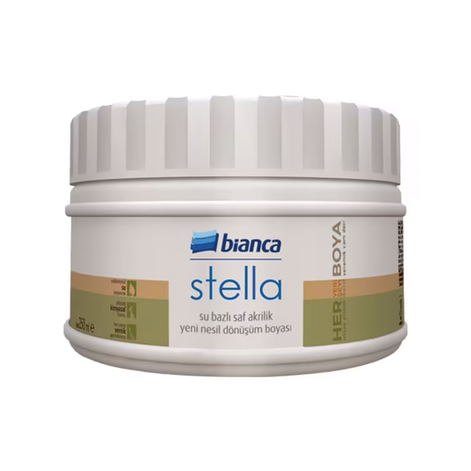 Bianca Stella Su Bazlı Saf Akrilik Boya, her türlü yüzeyde yüksek dayanım ve mükemmel örtücülük sağlayan, aynı zamanda özel uygulama tekniği ile ahşap desen görünümü kazandırmaya imkan veren dekoratif bir boyadır.