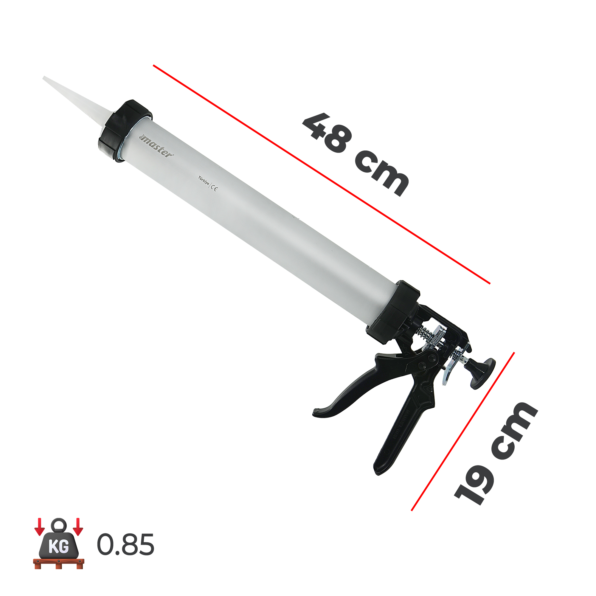 Ergonomik tetik mekanizması kontrollü malzeme akışı sağlayarak uygulama hatalarını azaltır. 600 ml sosis kartuşlarla uyumlu yapısı sayesinde geniş yüzeylerde hızlı ve pratik uygulama yapılabilir.
