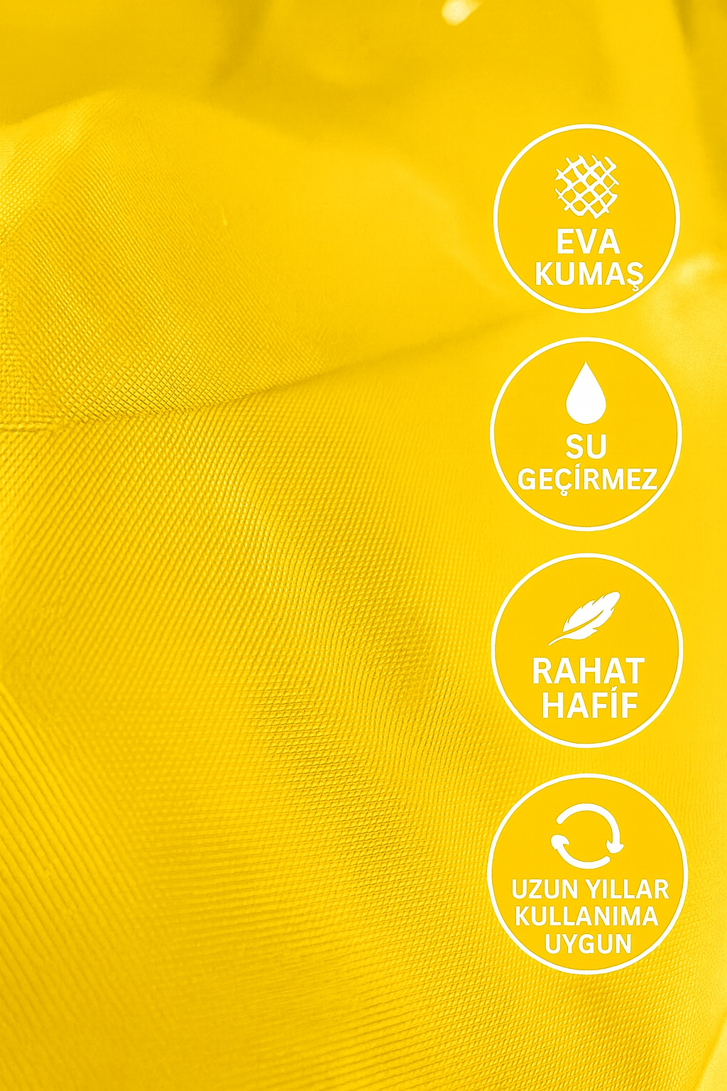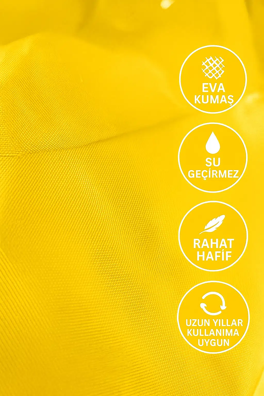 Tam su geçirmez: Dış yüzeyi PVC sayesinde suyu geçirmez, iç polyester astar konfor sağlar.