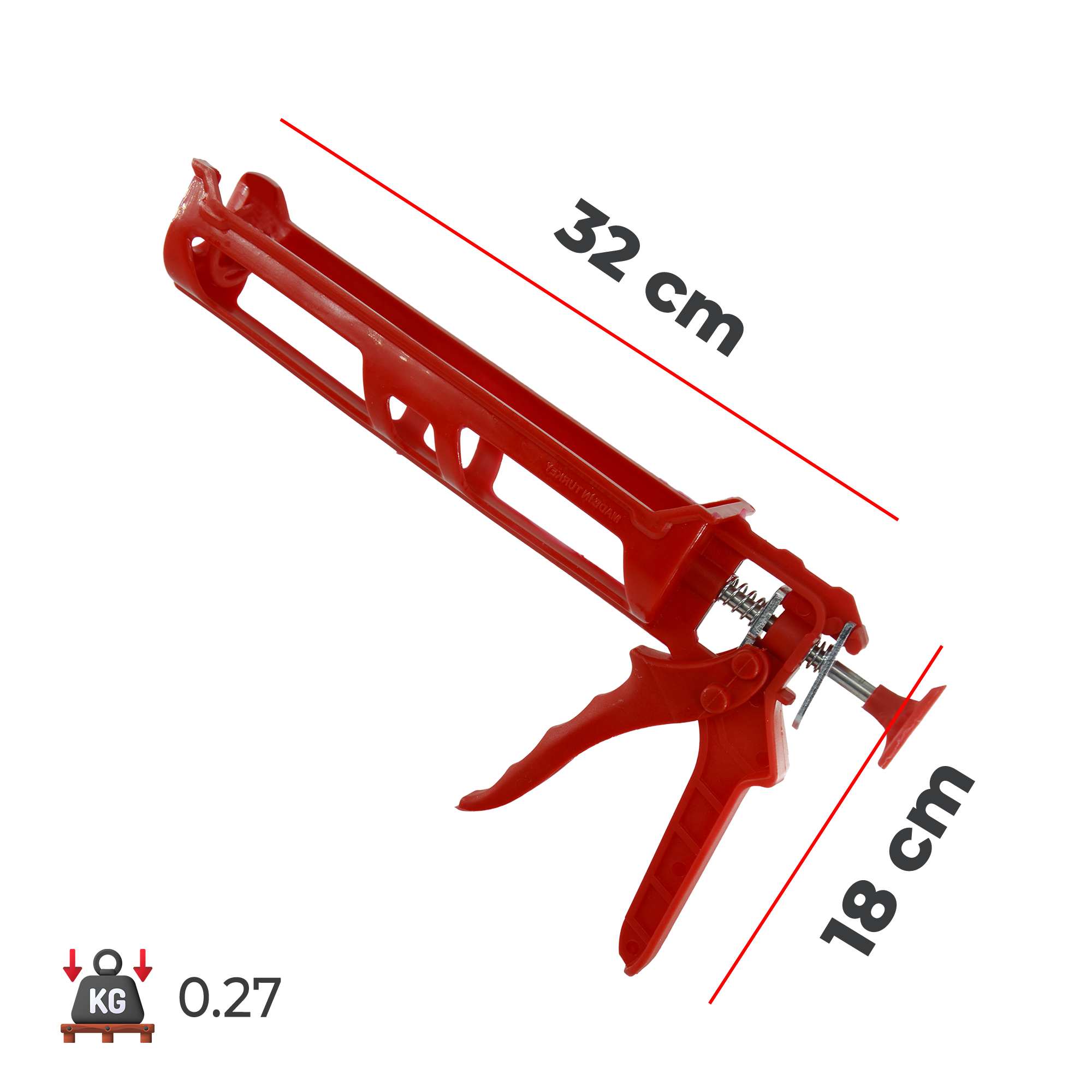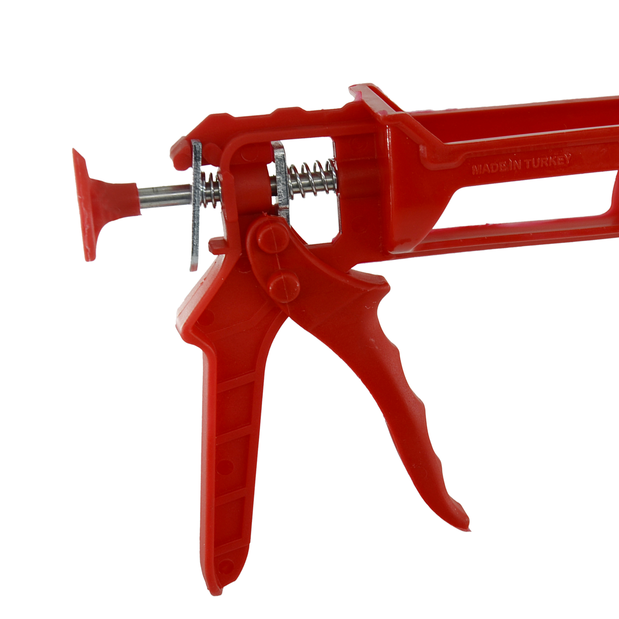 Plastik gövdesi hafiflik sağlarken, metal piston sistemi düzgün ve kontrollü malzeme akışı sunar. Yapı, izolasyon, montaj ve tamir işlerinde kullanıma uygundur.