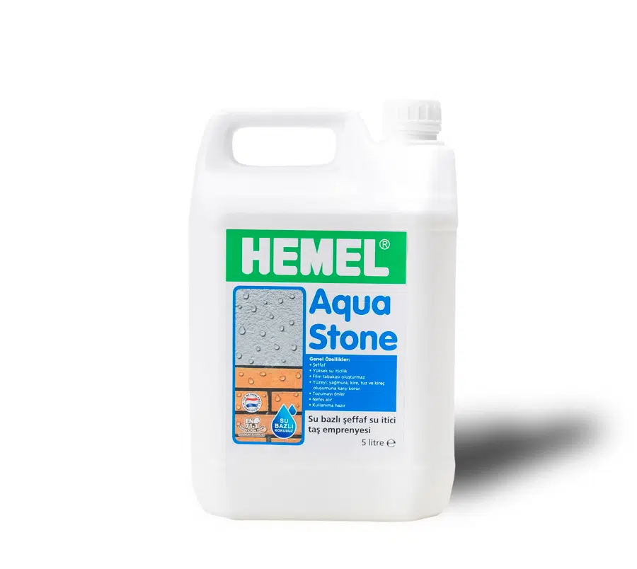 Hemel Aqua Stone Su Bazlı Doğal Taş Koruyucu Emprenye, iç ve dış mekanda kullanılan taş yüzeyleri su, kir ve yağ emilimine karşı korumak amacıyla geliştirilmiş şeffaf bir emprenye ürünüdür. Su bazlı yapısı sayesinde çevre dostudur ve uygulandığı yüzeyin doğal rengini değiştirmeden görünümünü korur.