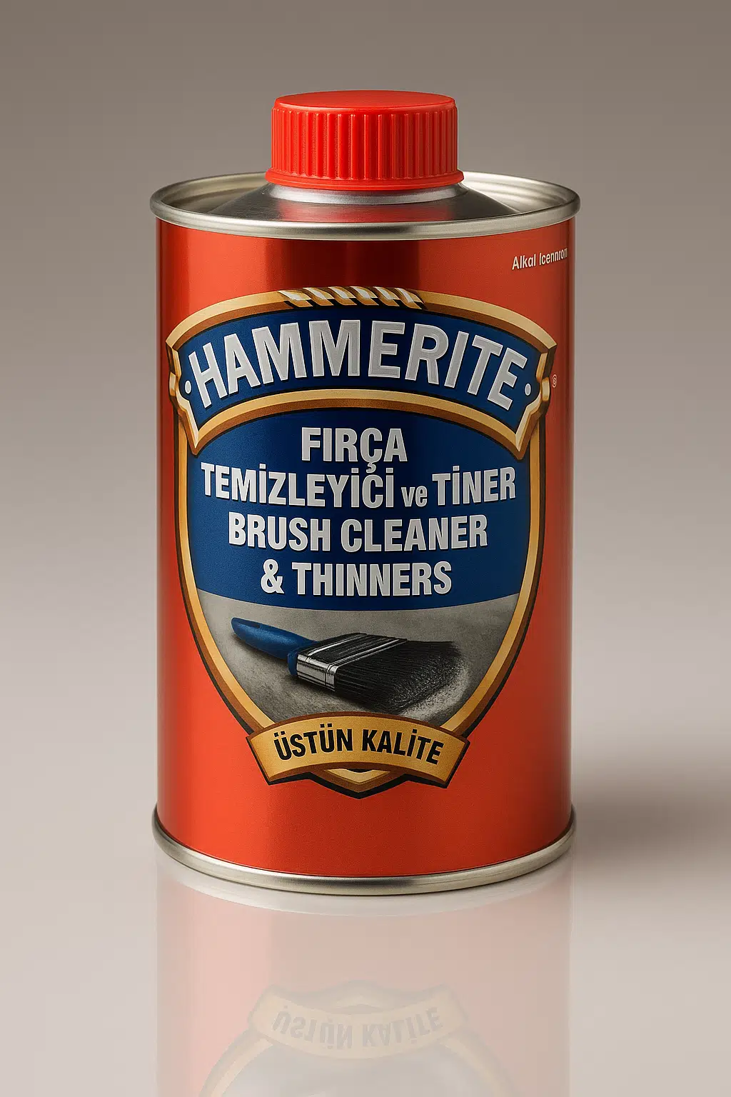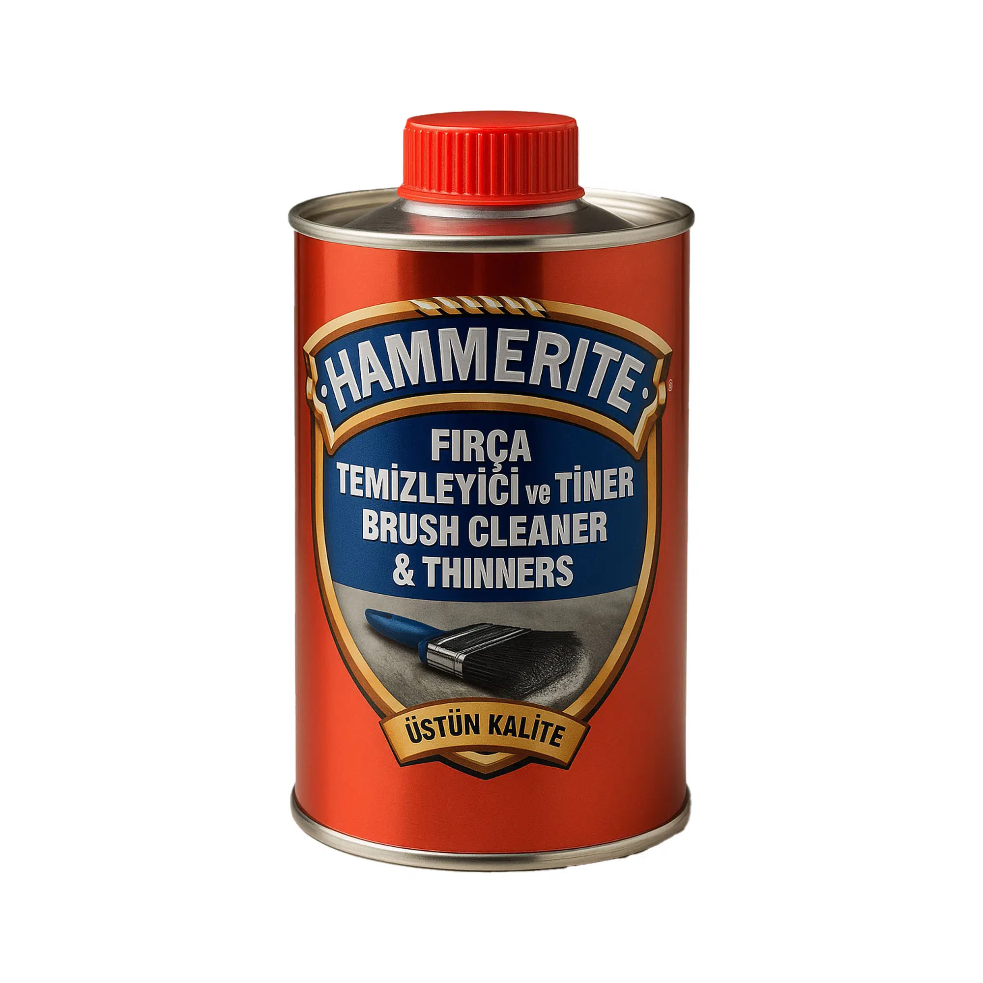 Hammerite Fırça Temizleyici & Tiner, Hammerite metal boyalarıyla mükemmel uyum sağlar. Fırça, rulo ve ekipmanları derinlemesine temizler. Aynı zamanda boyanın inceltilmesi ve daha kolay uygulanabilmesi için de kullanılabilir. 0,5 L ve 1 L seçenekleri mevcuttur.