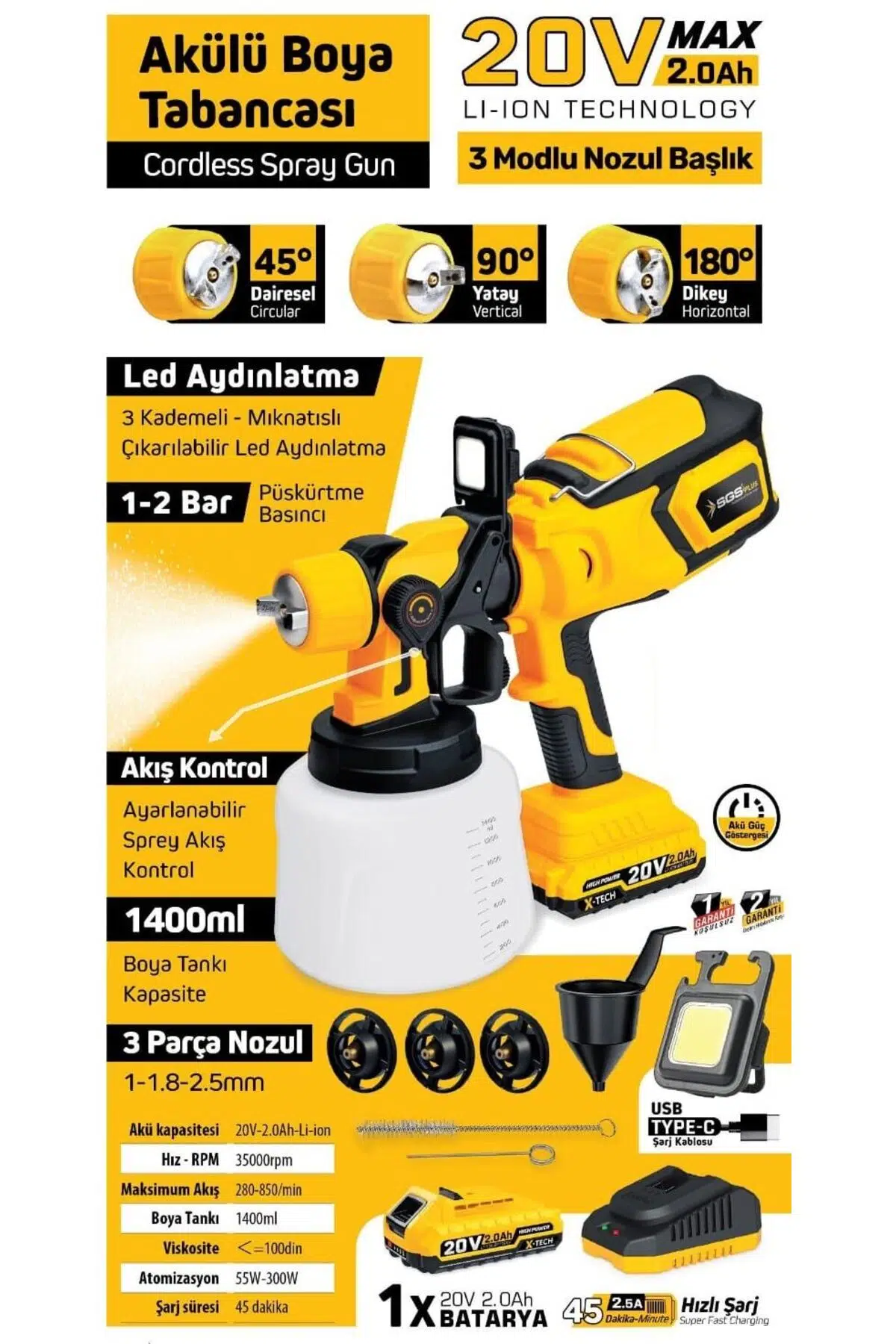 | Etiketler | SGS 5460 20V 2Ah Akülü Boya Püskürtme Tabancası 1400 ml Hazne 3 Nozullu LED Işıklı |