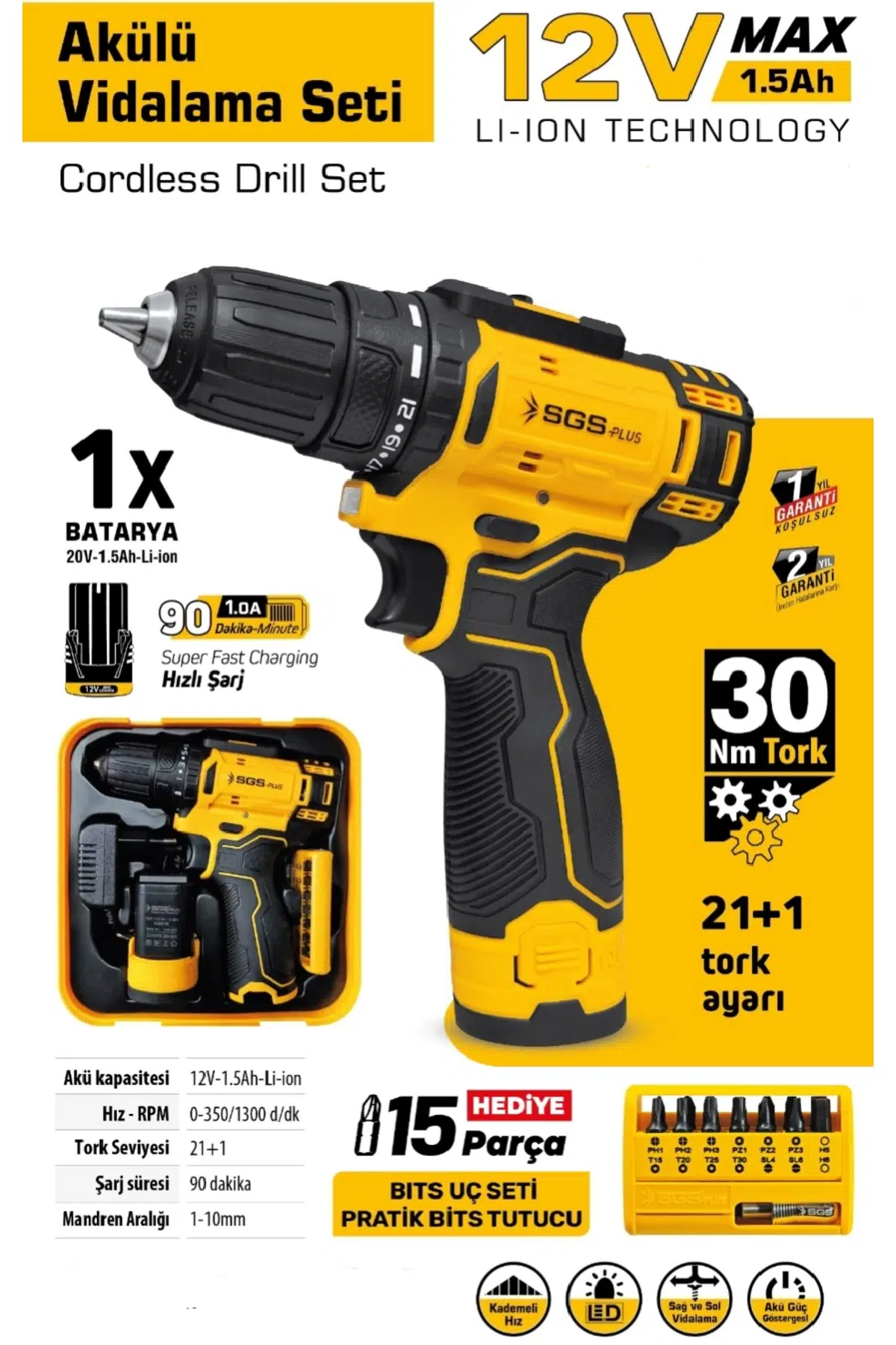 | Etiketler | SGS Plus 12V Li-Ion Şarjlı Vidalama Seti 30Nm Güç LED Işıklı Darbeli Matkap SGS-5147 |