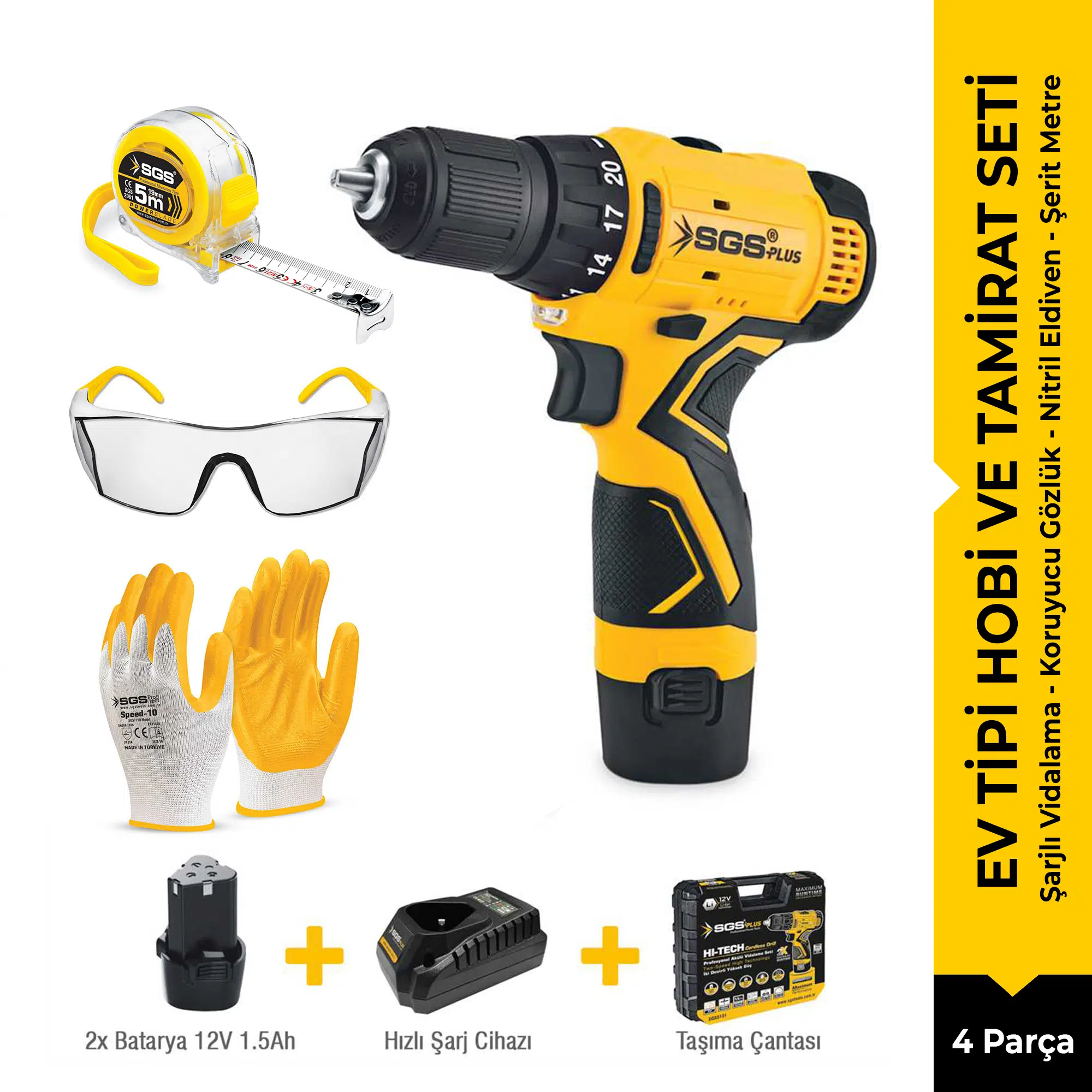 | Etiketler | SGS Plus Ev Tipi Hobi Tamirat Seti 4 Parça - 12V Şarjlı Matkap ve Otomatik Kilitli Metre |