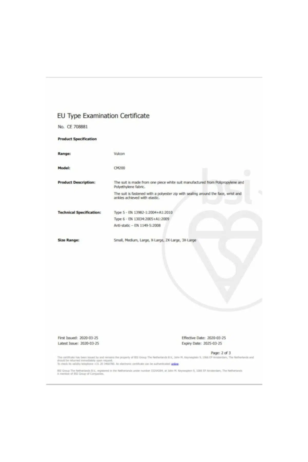 VULCON CS200 Koruyucu Tulum, endüstriyel ortamlarda çalışan personelin toz, sıvı sprey ve enfektif ajanlara karşı korunması için tasarlanmış CE belgeli profesyonel bir koruyucu tulumdur. Dayanıklı ve nefes alabilen %100 polipropilen SMS kumaş yapısı (60 gr/m²) sayesinde uzun süreli kullanımlarda maksimum konfor sağlar. Kapüşonlu, fermuarlı ve elastik manşetli tasarımıyla tam vücut koruması sunar.